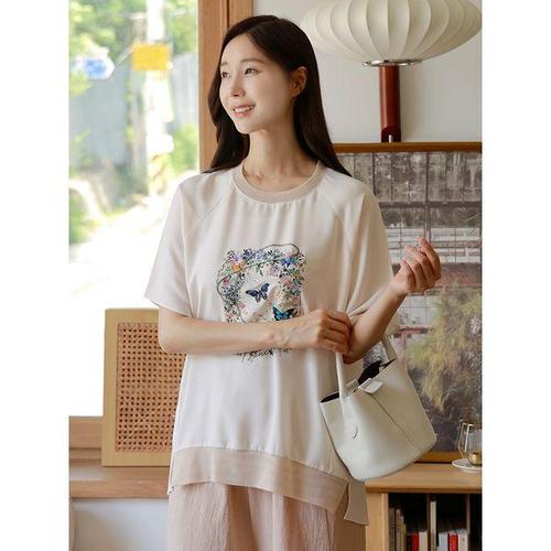 [드리다]여성 여름 프린팅 빅사이즈 쉬폰 반팔 블라우스 40-50대 미시 중년여성 엄마옷 캐주얼 출근 모임