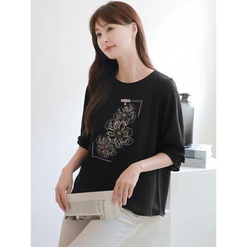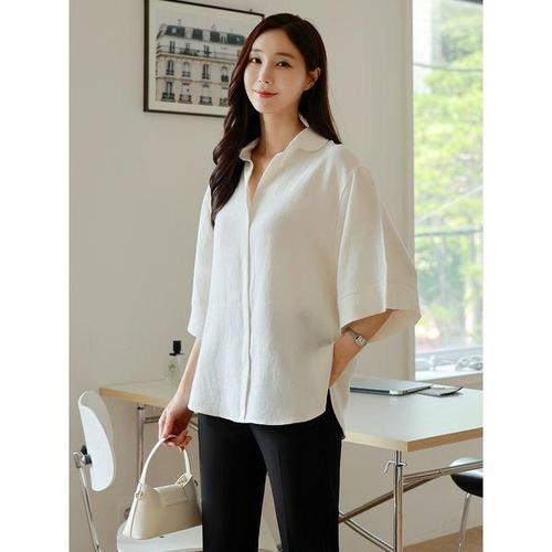 [드리다]여성 봄 여름 카라 빅사이즈 루즈핏 7부 블라우스 40-50대 미시 중년여성 엄마옷 하객 모임