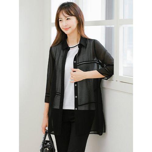 [드리다]여성 여름 7부 시스루 빅사이즈 오픈 셔츠 블라우스 자켓 40-50대 미시 중년여성 엄마옷 하객 모..