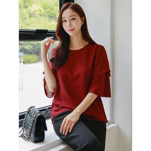 [드리다]여성 가을 이중 소매 빅사이즈 7부 프릴 블라우스 40-50대 미시 중년여성 엄마옷 하객 상견례 모..