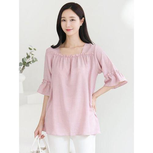 [드리다]여름 스퀘어넥 프릴 빅사이즈 반팔 블라우스 하객 상견례 모임 미시 엄마옷