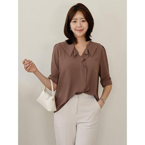 [드리다]여성 여름 간절기 가을 카라 프릴 빅사이즈 쉬폰 블라우스 하객 상견례 오피스룩 미시
