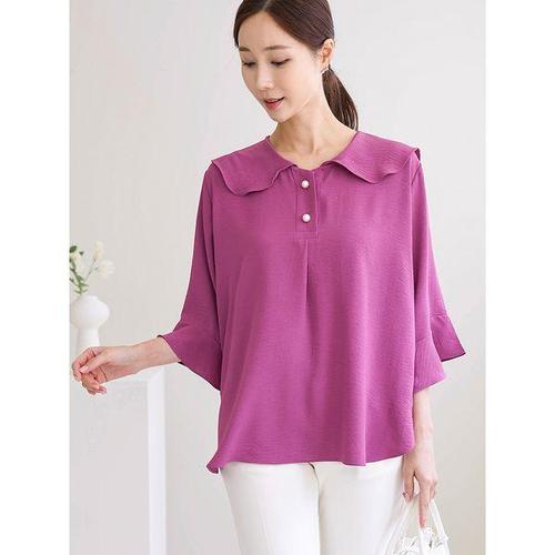 [드리다]여성 봄 여름 빅카라 진주 프릴 빅사이즈 7부 블라우스 하객 오피스룩 학부모 모임 미시