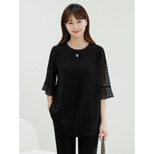 [디얼마미] 데미 레이스 블라우스 마담 미시 중년 여성 빅사이즈 40대 50대