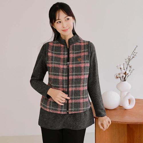[디얼마미][디얼마미] 브이 울 조끼 원피스 세트 /마담 미시 중년 여성 빅사이즈 40대 50대
