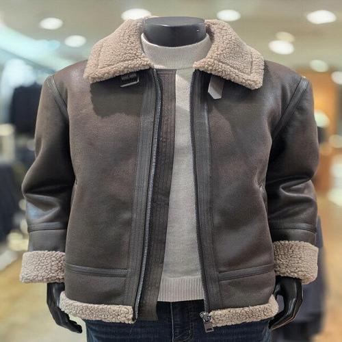[바쏘옴므][바쏘옴므] WSZ4UA45ABR 25년 F/W 브라운 양가죽 배색 페이크 무스탕 점퍼 (P003721598)