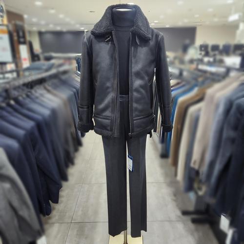 바쏘옴므 세이브존03 바쏘옴므 남자 블랙 양가죽 배색 무스탕 점퍼 WSAGZ4U