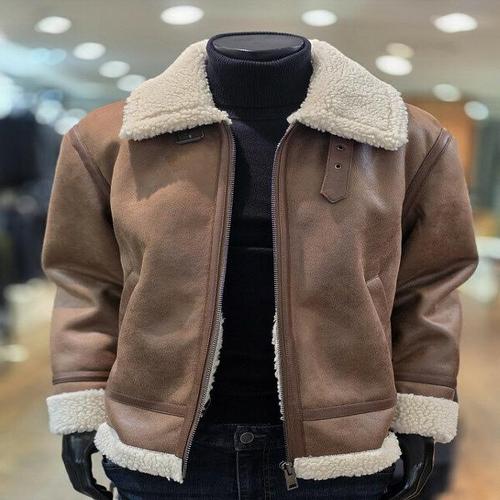 [바쏘옴므]천연 양가죽 배색 페이커 레더 무스탕 점퍼 브라운 Z4UA46A-2