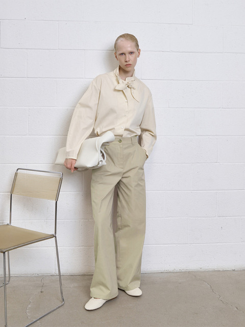 [렉토] 커브 레그 크레이프 팬츠 (오프 화이트)