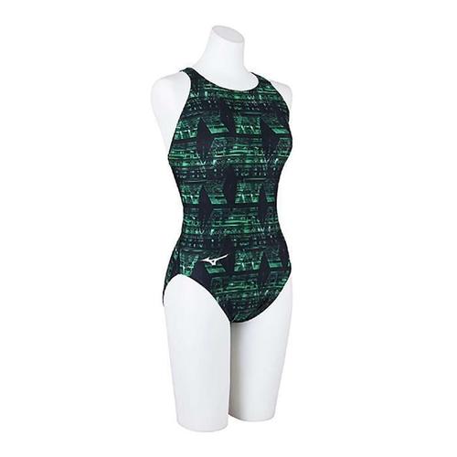 MIZUNO 미즈노 여성 반신 수영복 실내 수영장 강습용 N2CAB389 자수 연습 훈련