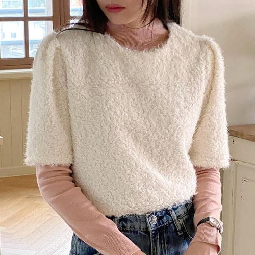 여자 앙고라 반팔 라운드넥 겨울 티셔츠