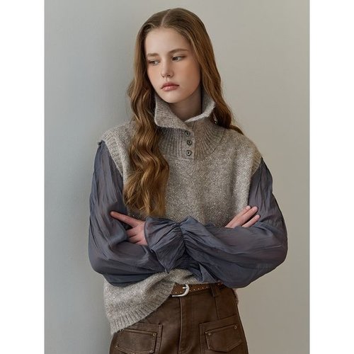 [마쟈]스팽글 믹스 버튼 하이넥 니트 베스트