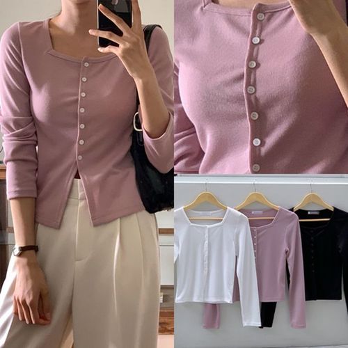 나야홍 / 위쉬몰 DD 믹스스퀘어골지버튼티(Q081H 510) 빅사이즈