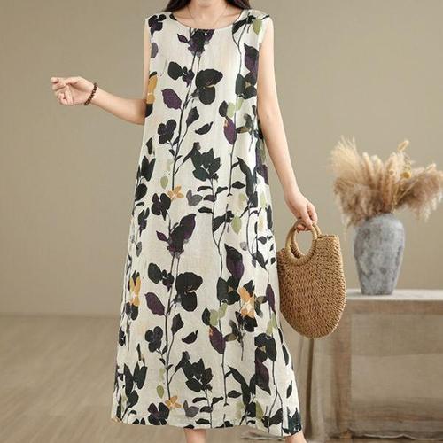 [에이치플러스몰]여성 플라워패턴 여신 프린트 슬리브리스 원피스