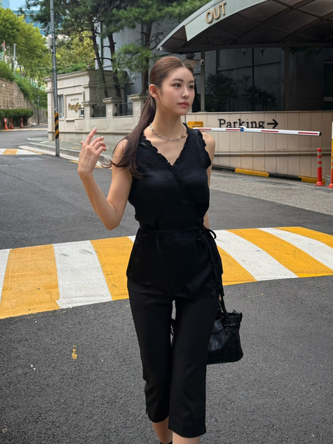 여자 러블리 레이어드 랩스타일 스판 끈 나시