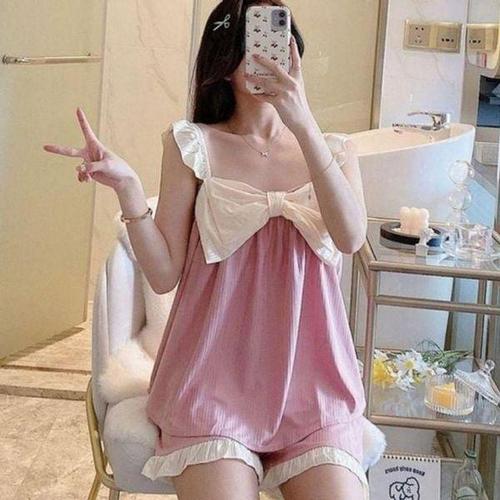 [에이치플러스몰]크롭 인기 홈웨어 끈나시 숏팬츠 감성 여자 반바지 티