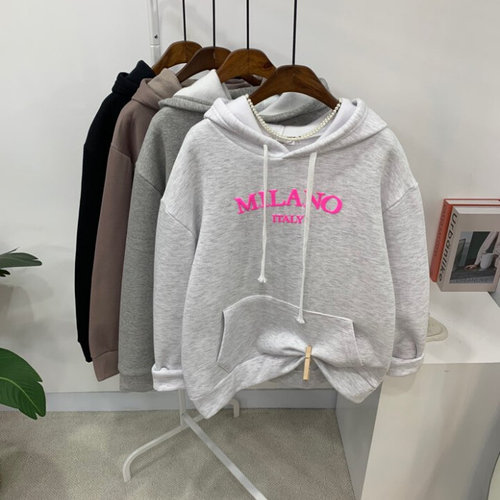 씨샵인더룸 / 1 + 1 상품 밀라 기모 발포 레터링 긴팔 후드 맨투맨 4color