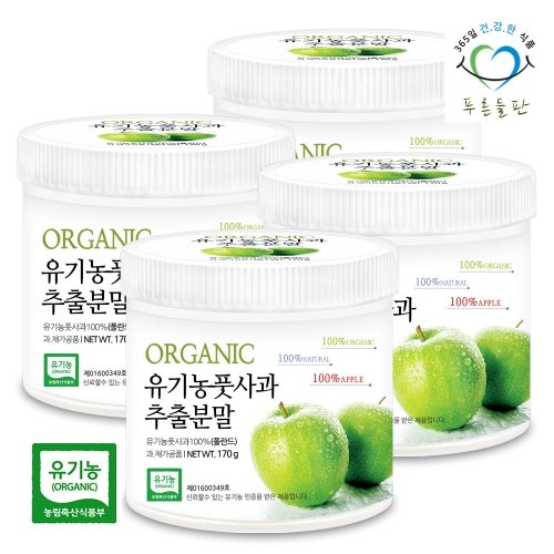 [푸른들판] 유기농 풋사과 추출 분말 100% 170gx4통 푸른 사과 파란 청사과 아오리 초록사과 가루