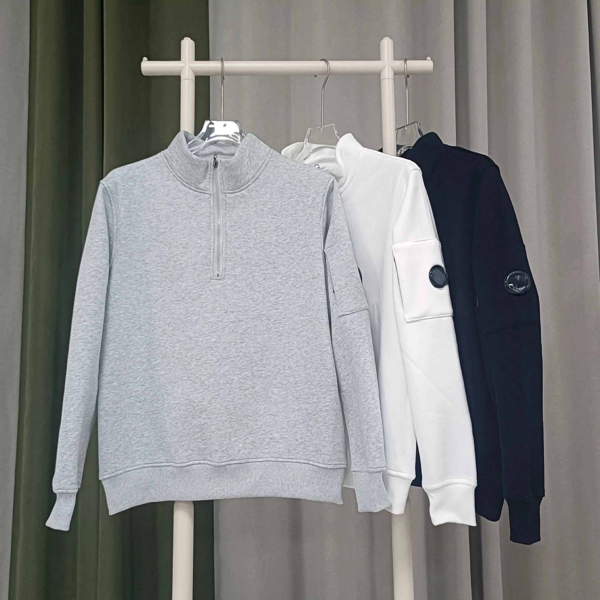 가을과 겨울에 남성용 CP 하프 집업 플리스 후드티, 두꺼운 단색 포켓, 거울 대비 탑, 라운드 넥 트렌디 브랜드