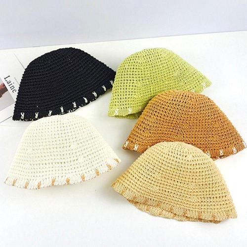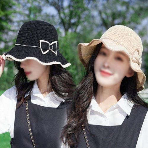예쁜 모자 밀짚 버킷햇 벙거지 여행 모자 WFJUY1V