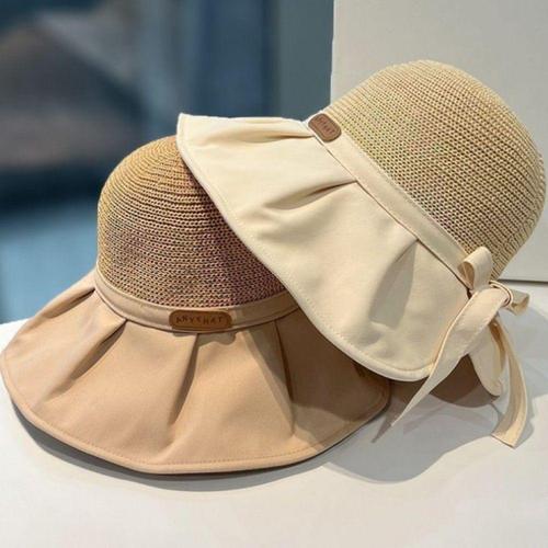 투톤 끈 벙거지 모자 밀짚 모자 해변 여성 WFLZ1TV
