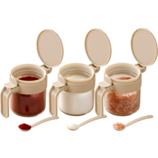 유피해피 스푼 밀폐 조미료통 양념통 세트, 본품+스푼, 3개