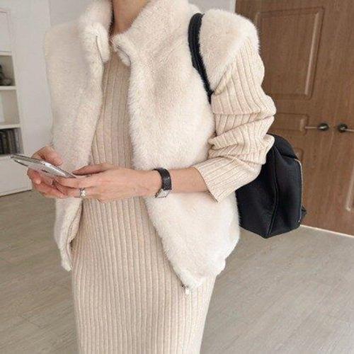 클릭버이 고급스러운 양모베스트 에코퍼 인조퍼 밍크조끼
