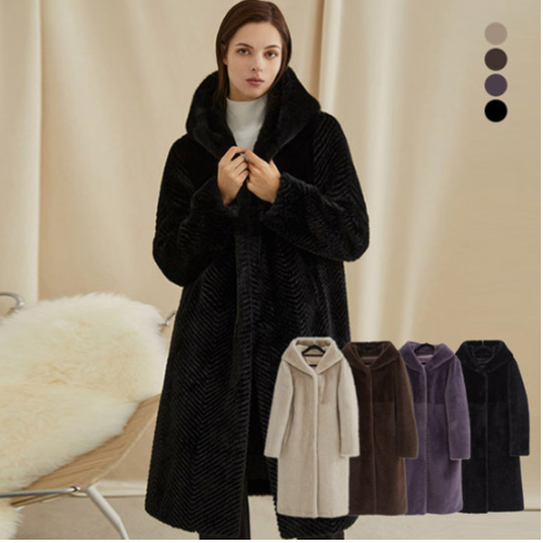 [엘루아] VEGAN FAUX 밍크 후드 롱 코트 4종택1