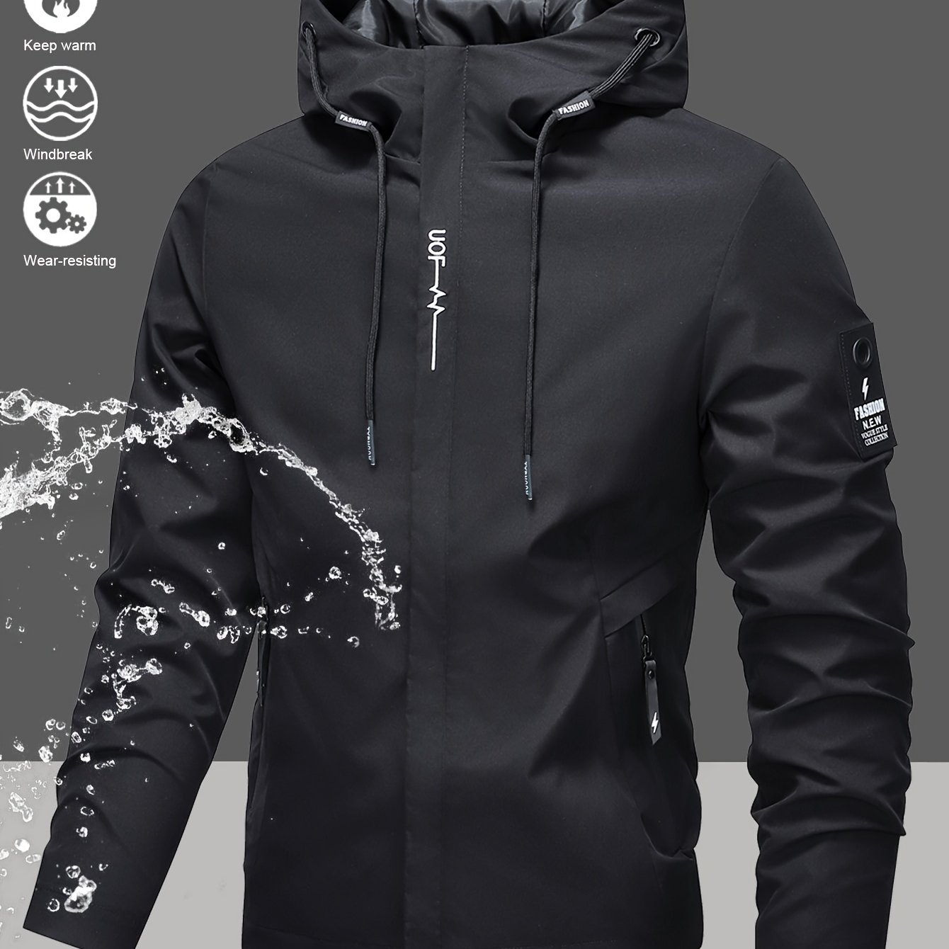 TEMU Persun Selected 남성 패션 단색 아웃도어 지퍼 드로스트링 후드 긴팔 재킷 탑