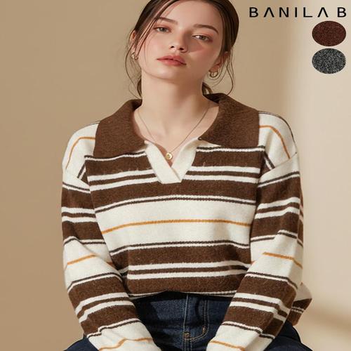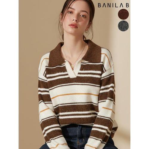 [바닐라비]여성 스트라이프 오픈카라 니트
