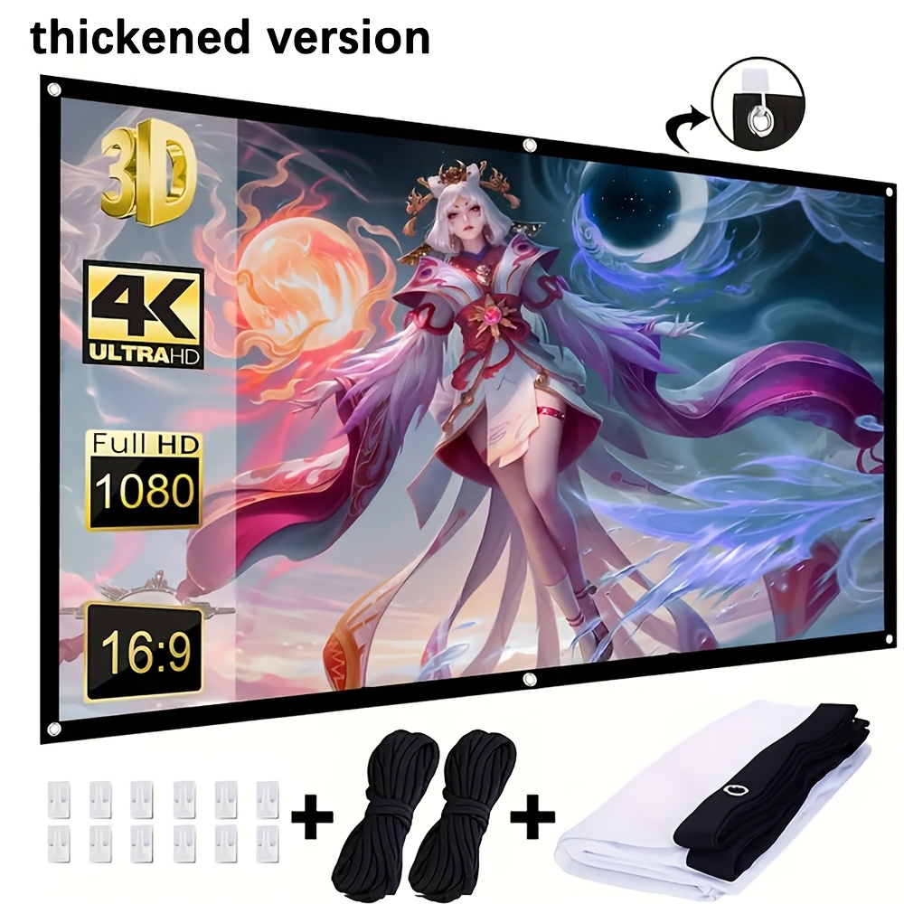 TEMU 4K HD 트로피컬 해변 풍경 프로젝터 스크린 - 휴대용, 접이식, 풀 사이즈 실내/외 홈 시어터 디스플레이, 스판덱스 소재, 야외 프로젝터 스크린, 생생한 디스플레이, 접이식 디자인