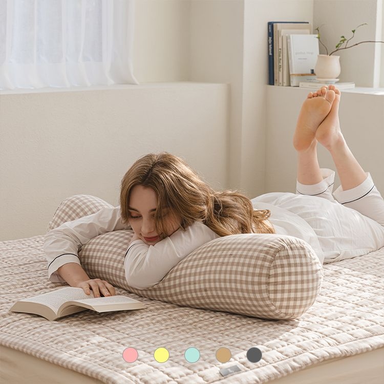 허그미 순면 바디필로우 원통형 B 퓨어체크 (오트베이지)