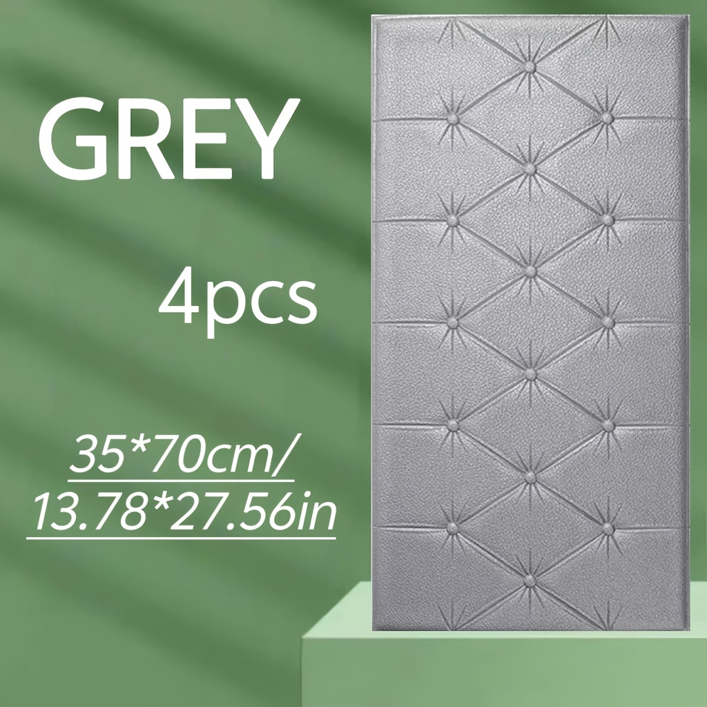 TEMU 3D 폼 소프트 팩 자가 점착 벽 스티커 4개 세트 (텍스처 디자인). 잘라서 사용하고 쉽게 제거할 수 있으며, 방수, 얼룩 방지, 충돌 방지 기능이 있습니다. 두께가 있고 부드러워 침실 벽 장식 또는 기타 공간에 적합합니다.