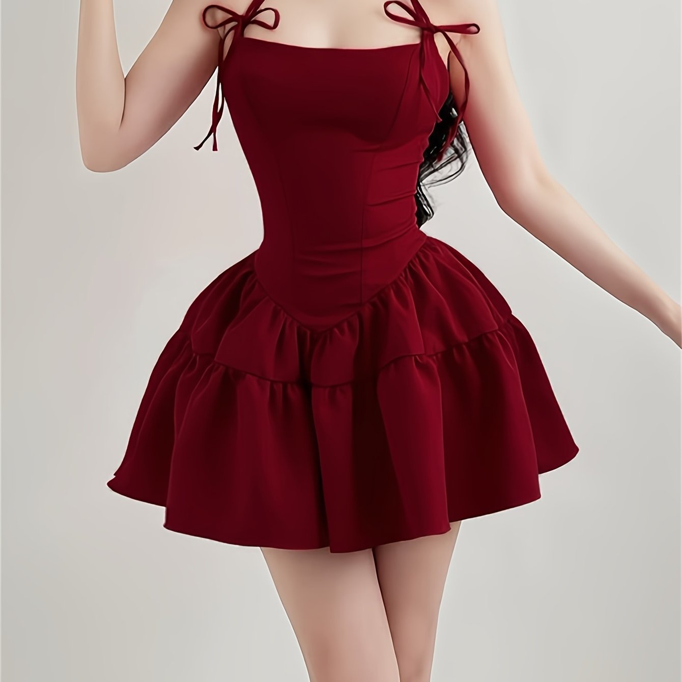 TEMU 우아한 블랙 레이스업 할터 넥 A라인 우산 스커트, 보우 디테일 - 단색, 프릴 하hem, 봄/여름 패션 여성용, 다용도 스커트 | 우산 스커트 스타일 | 레이스업 디테일