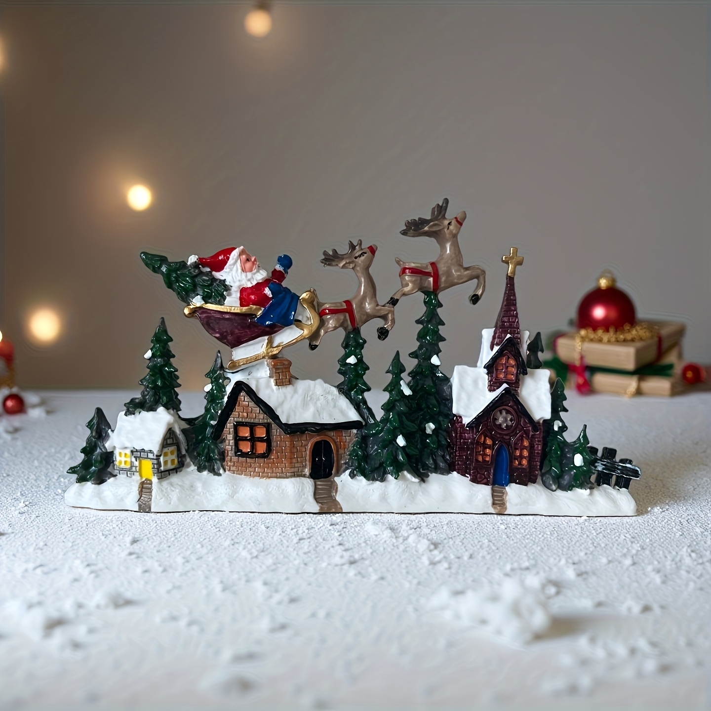 TEMU 클래식 레진 산타 클로스 썰매와 사슴 장식 - 전원 불필요,松과 눈꽃이 있는 축제 분위기의 눈꽃 장면, 침실 또는 거실 테이블 장식에 적합