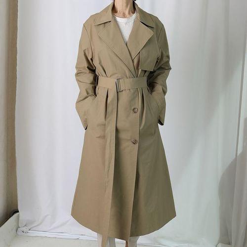 [더웨이나인]여성 롱 트렌치코트 바바리 테일러드 카라 벨티드