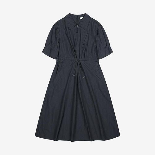 미즈큐즈 / 바스락 반집업 카라 허리 스트링 루즈핏 롱 원피스