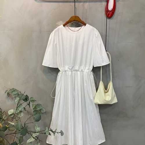 더한땀 루즈핏 바스락 스트링 반팔 롱 원피스
