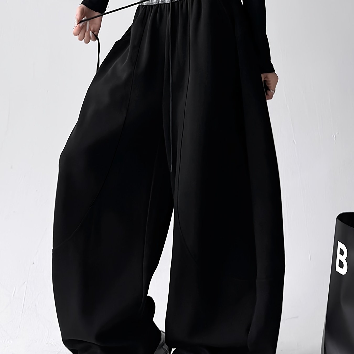 TEMU 플러스 사이즈 - 플러스 사이즈 - 롱 플러스 사이즈 패셔너블 캐주얼 드로스트링 포켓 와이드 레그 스웨트팬츠