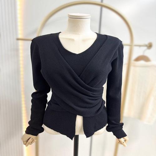 [스타일리쉬바이피클]슬림 셔링 브이 니트 티셔츠 LSD9KT02GD1