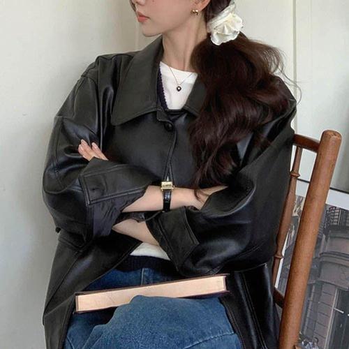[셀럽하우스]카라넥 RBJH6041 오버핏 여성라이더자켓 가죽재킷 루즈 바이크