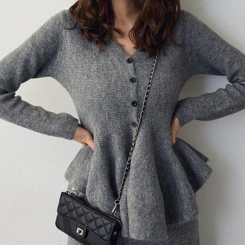 [핑크엘리제]페플럼 코지 따뜻한 팬츠 셋업 제르니아니트투피스