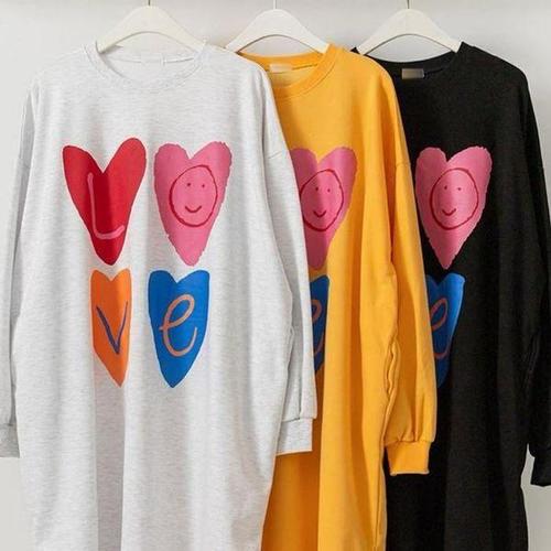 [셀러허브_여성트랜드패션]409S689S X 빅사이즈 하트프린팅롱박스원피스 여성의류