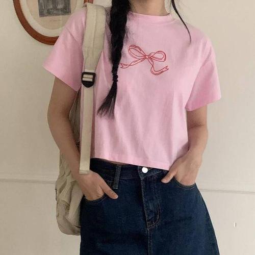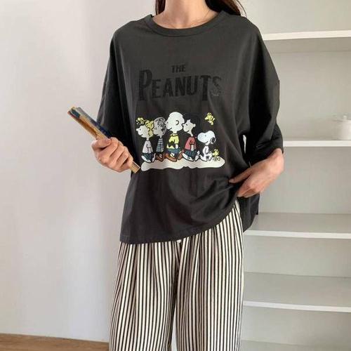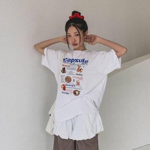 [에이치플러스몰]박스핏 여성 추천 프린팅 라운드넥 꾸안꾸 면 반팔 티