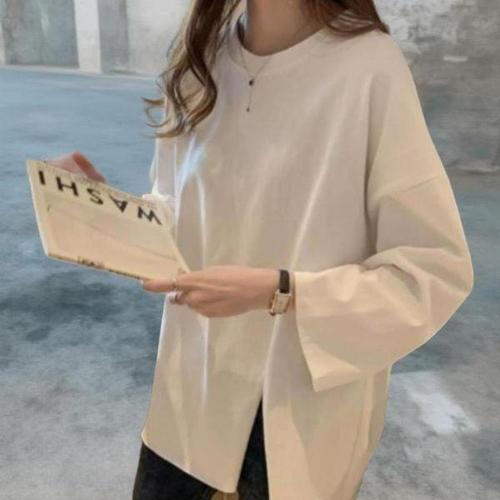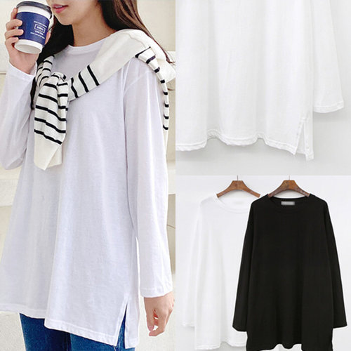 [신상오픈런]여성 무지컬러 박스핏 사이드 슬릿 라운드넥 긴팔티셔츠