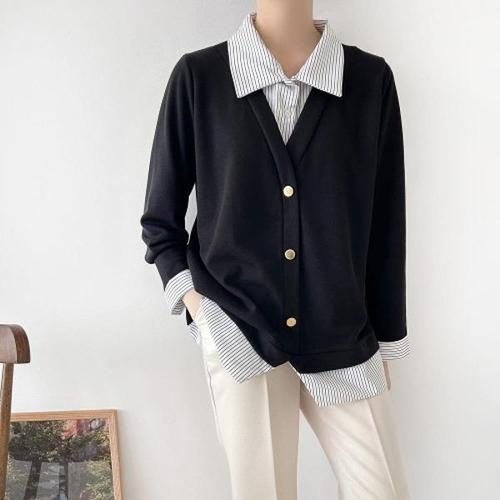[다잇템][다잇템] 여자 페이크 박스핏 코디 남방 단가라 티셔츠_23563460_588872