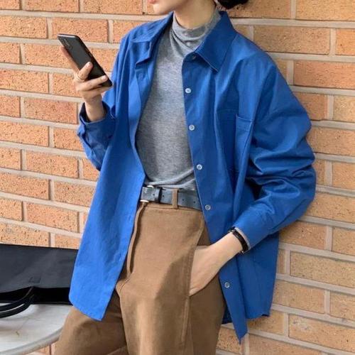 [신상오픈런]여성 빅사이즈 단색 면100 박스핏 블라우스
