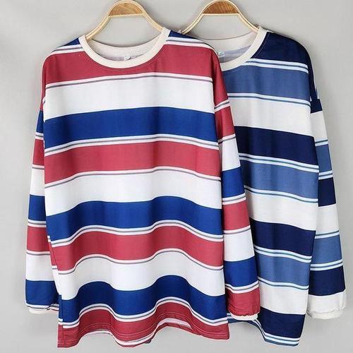 [셀러허브_여성트랜드패션]ONM 여성 넓은 스트라이프 맨투맨 1P 박스핏 긴팔티