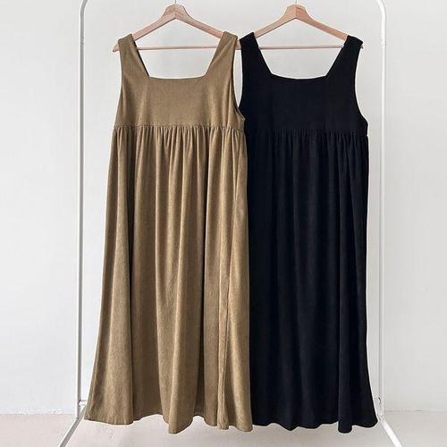 [옷자락] 여자 겨울 골덴 스퀘어넥 박시 속기모 나시 롱원피스