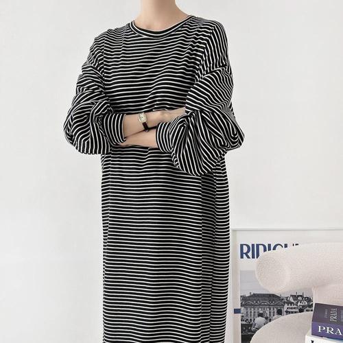 [유야]데일리 단가라 박시 긴팔 롱 원피스 임부복 -OP0567H- 빅사이즈 루즈핏 여성 가을